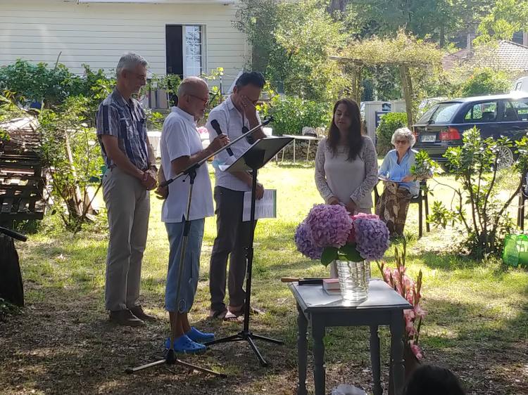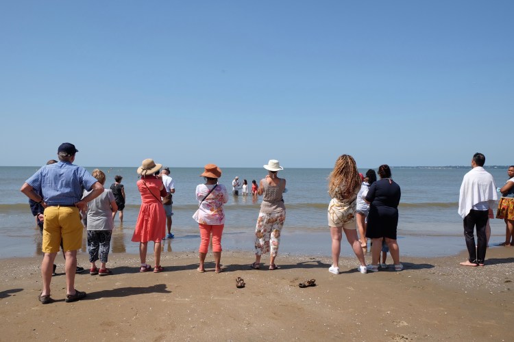 Le dimanche 18 juillet, nous avions un culte en plein air dans le jardin de Pierre et Gladys Geiser qui nous accueillaient très fraternellement. Au cours du culte, nous avons célébré la bénédiction du mariage de deux membres de notre église et à la fin du culte, nous sommes tous partis vers la plage, afin qu’ils soient baptisés dans l’océan.
