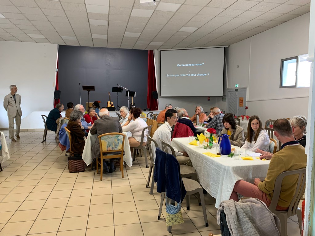Ceux qui le désirent peuvent rester ensuite à 12h30 pour un repas afin de prolonger ce temps convivial. Chacun apporte un met à partager avec les autres.