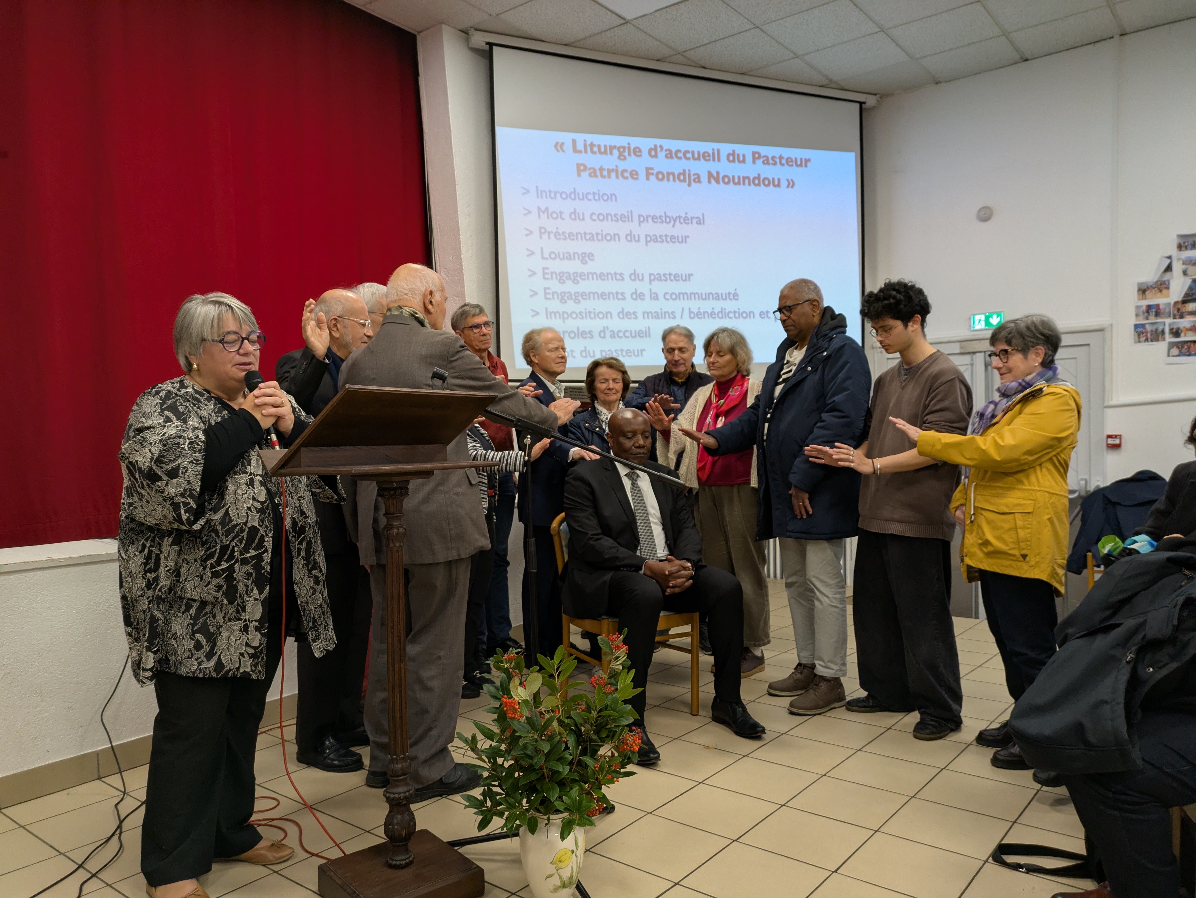 C’est avec une grande joie et avec gratitude que nous avons accueilli officiellement Patrice Fondja Noundou et sa famille, lors d’un culte “d’accueil” le 16 novembre dernier à la “Frat” (lieu de nos cultes). Il fut présidé par Caroline Schrumpf (Vice-présidente du conseil régional de l’ouest et faisant partie de l’équipe missionnaire).