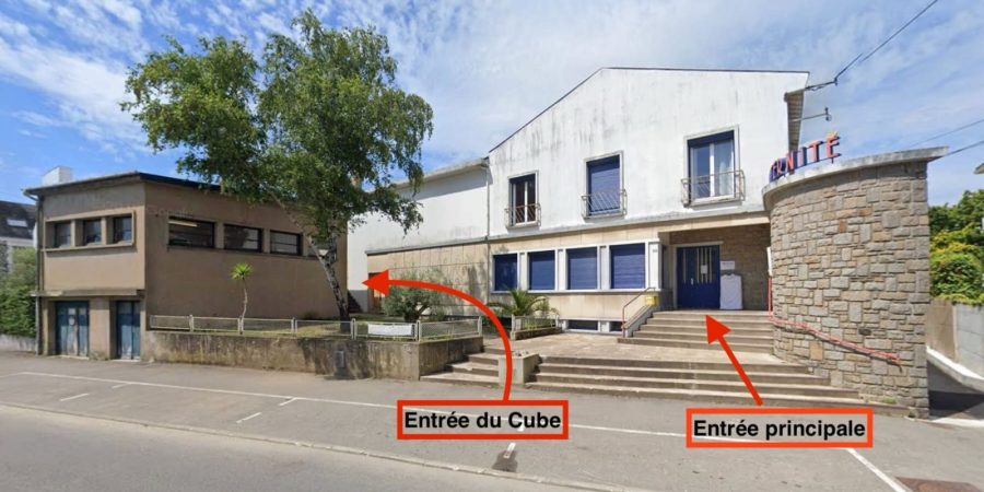 Le Cube se trouve à gauche du bâtiment principal de la Fraternité, au 1er étage.