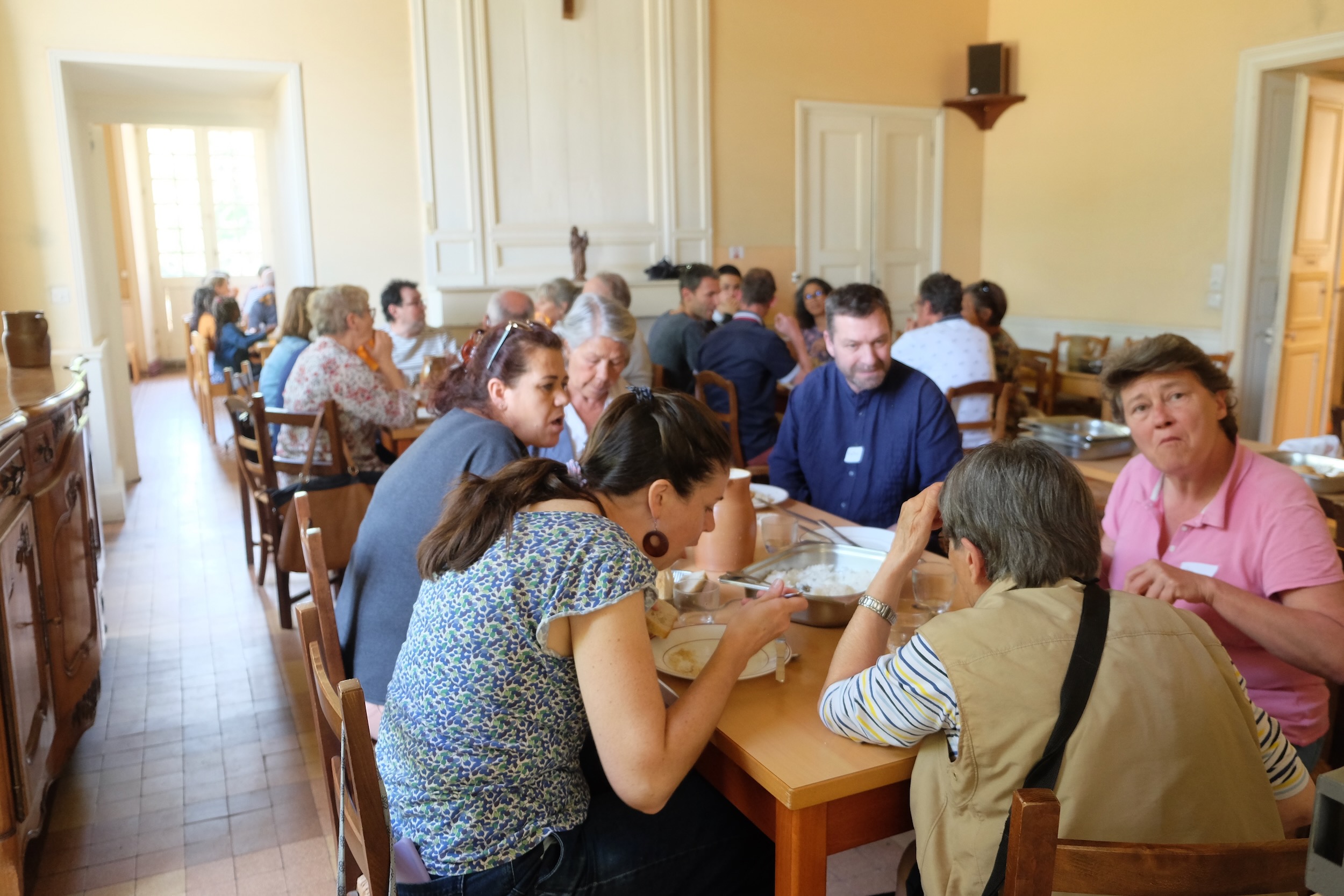 Nous étions une cinquantaine de 2 ans à 84 ans, hébergés dans des petites chambres lumineuses à l’Abbaye de la Melleray, au nord de Nantes. Ce fut une grande joie de nous retrouver dans un si beau cadre où tout nous rappelait que Dieu est bon, qu’il est présent au milieu de nous et qu’il vient bénir nos relations fraternelles !
